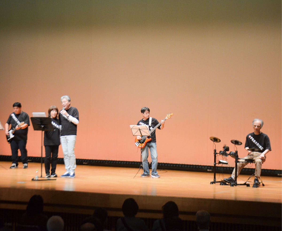 1部は、ほどがや脳神経外科クリニックの日暮雅一院長を講師に招いた講演を実施。認知症の種類のほか、年齢相応のもの忘れと認知症による記憶障害の違いなどについて学んだ。2部は認知症当事者も所属するバンド「ストロベリーパラダイス」が坂本九さんの名曲「上を向いて歩こう」などを演奏。アンコールではバンドメンバーが会場を練り歩き、観客と握手するなどして交流した。