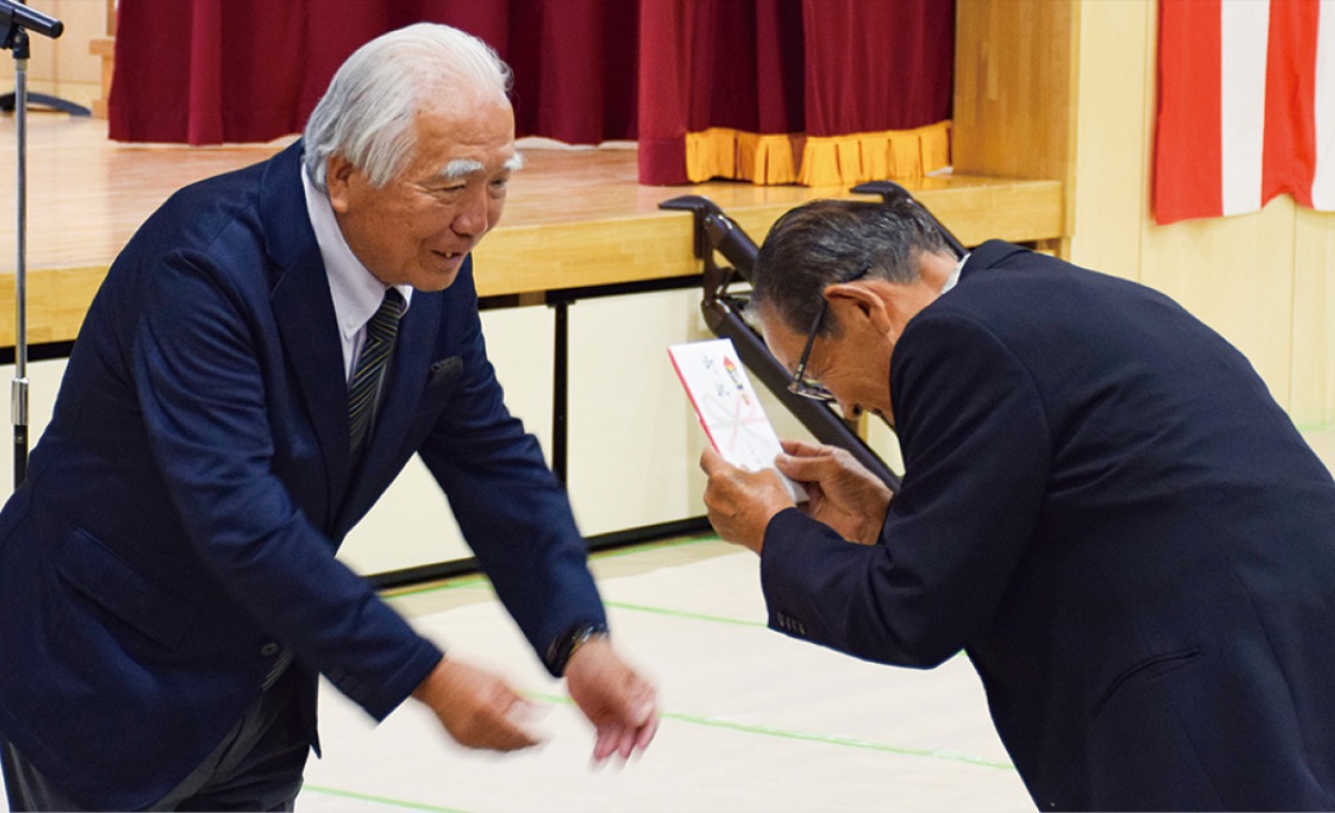 式典であいさつに立った松野会長は「年を重ねるということは決して寂しいことではない。みなさんのこれまでの経験や知識を生かしながら、新しい道を進んでいただきたい」と参加者に言葉を送った。また、米寿と白寿を迎える参加者に長寿慶祝金が贈呈されたほか、懇親会では囃子太鼓(上菅田はやし会)や新創作舞踊(吉野流社中)が会場を盛り上げた。