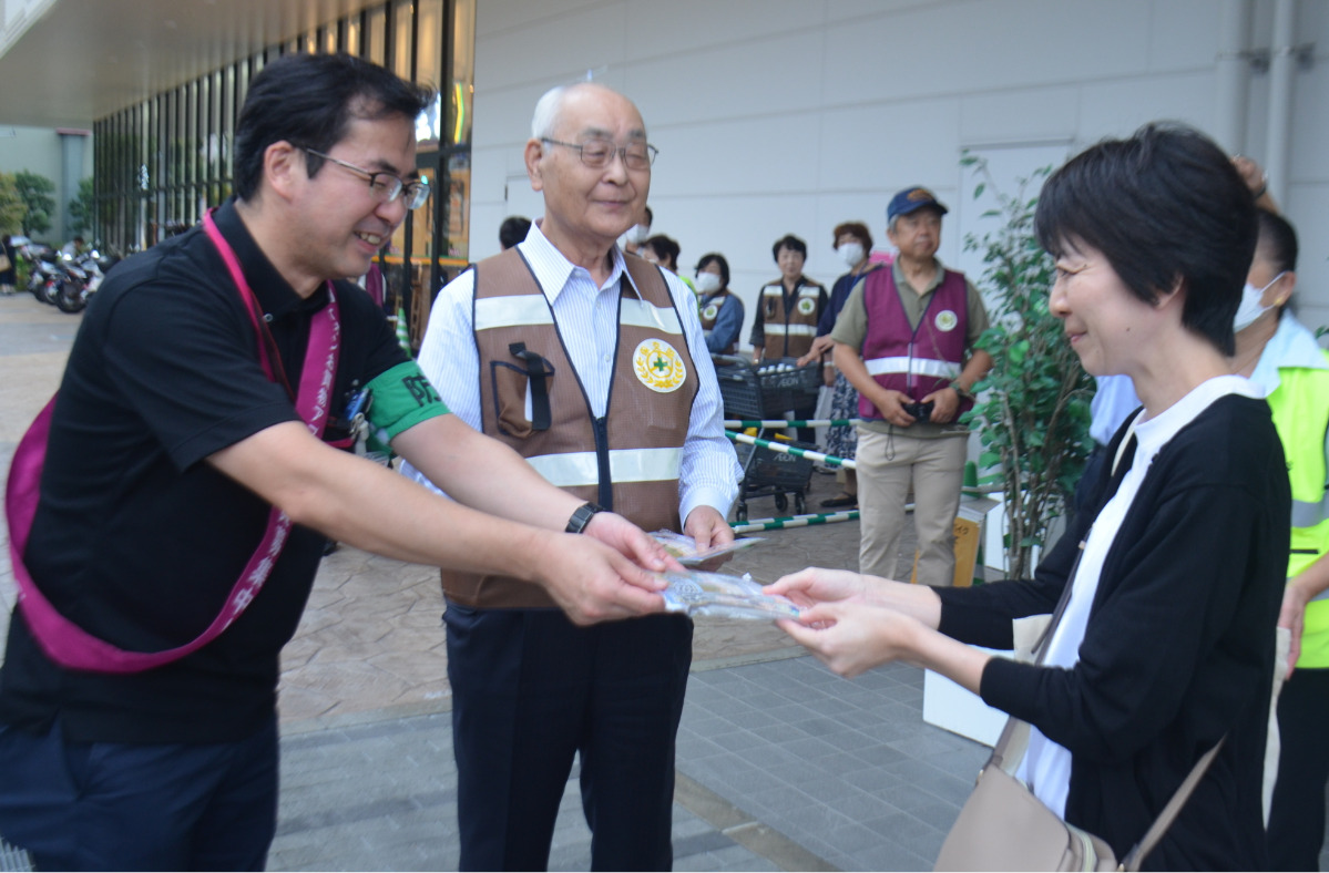 キャンペーンは、秋の全国交通安全運動週間(9月21日〜30日)に合わせて実施。日頃から交通安全に寄与している団体の関係者のほか、同店の従業員が買い物客などに啓発物を配り、ドライバーの安全運転や歩行者が正しい交通マナーを徹底することが事故の減少につながると説明した。板橋会長は「なるべく人通りが多い場所で活動し、交通安全の輪を広げていきたい」と話した。