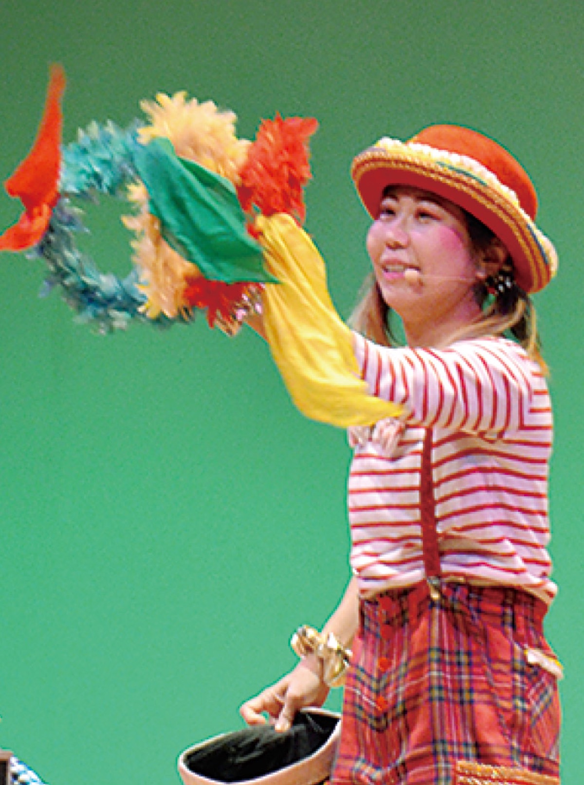 童謡歌手の坂入恵美さんと真紀さんによる姉妹デュオ「坂入姉妹」が「アイアイ」などを歌った後、音楽に合わせて体を動かす「親子リトミック」を参加者と共に楽しんだ。ジャグラーやバルーンアーティストとして活動する「アッキーちゃん」も登場し、パフォーマンスを披露。坂入姉妹と共演し、会場を盛り上げていた。