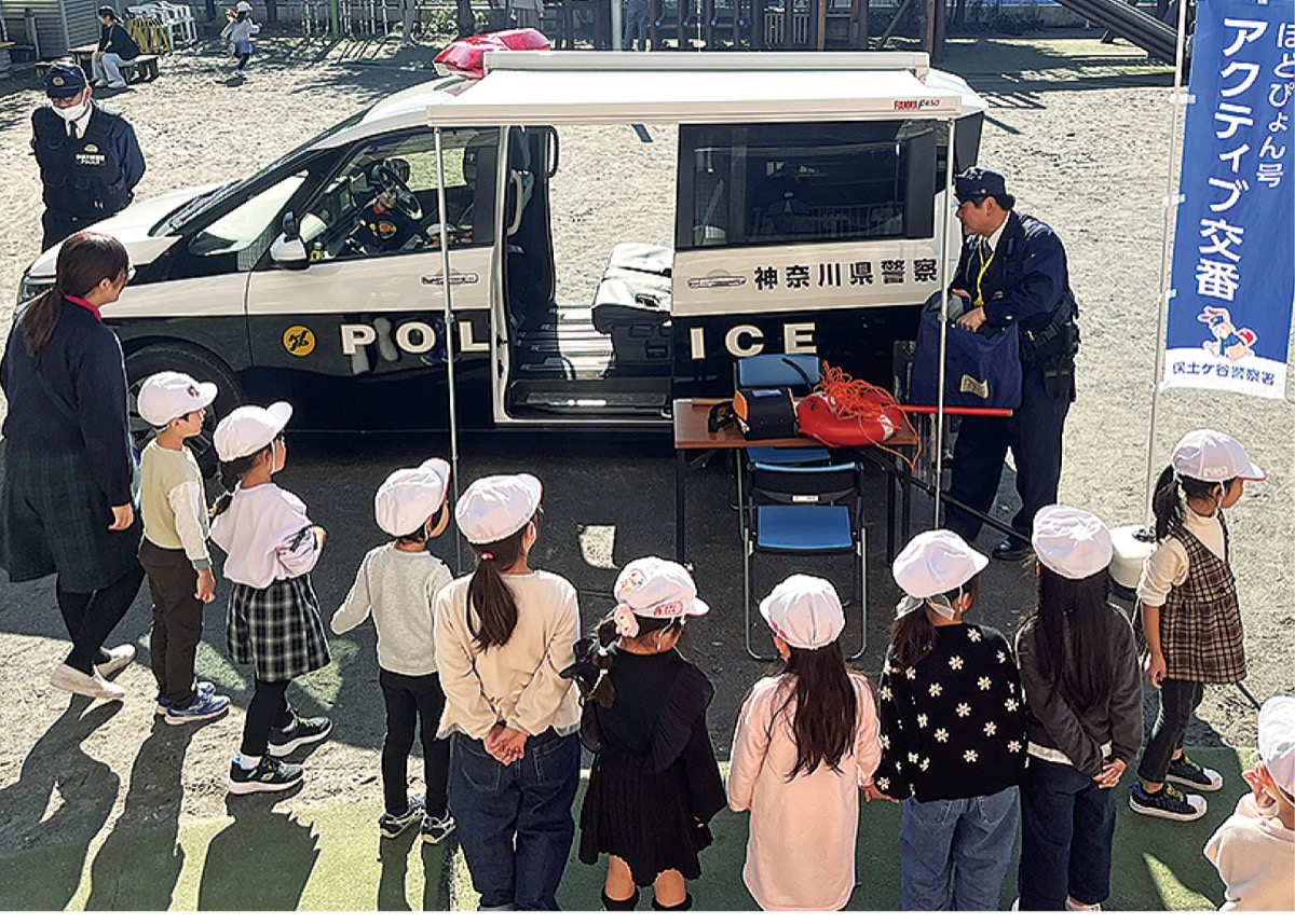日常生活を安全に安心して暮らすことができているのは当たり前ではなくいろいろな人の支えがあるということを園児に伝えることを目的としており、同園では数十年続く恒例行事となっている。「勤労感謝の日」を前日に控えたこの日は、警察官、消防署員のほか、芋掘りで関わりのある藤田美由紀さん(藤田農場)が、それぞれ職種ごとの仕事内容を園児に説明した。