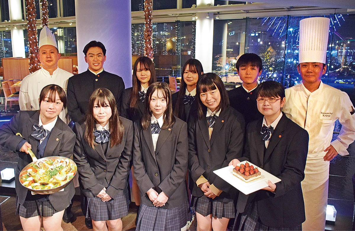 「自分たちが考えたメニューがブッフェメニューとして形になったという貴重な経験は、生徒さんたちの今後に必ず生かされると思う」と能登谷総料理長。