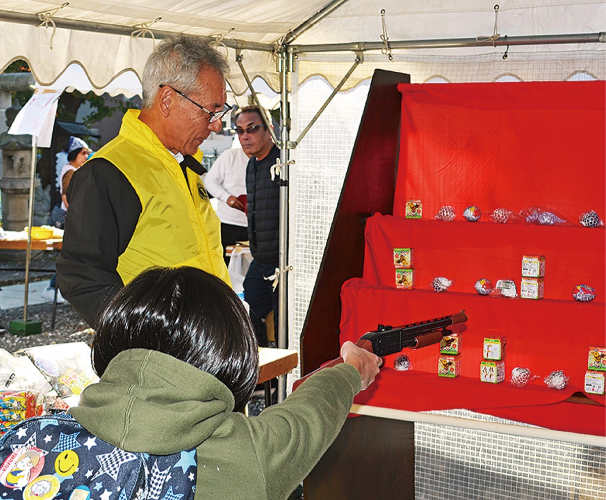 横浜たちばなライオンズクラブ(吉田俊和会長)が11月23日に西区の浅間神社で行われた新嘗祭に参加し、射的の模擬店で人々を楽しませた。