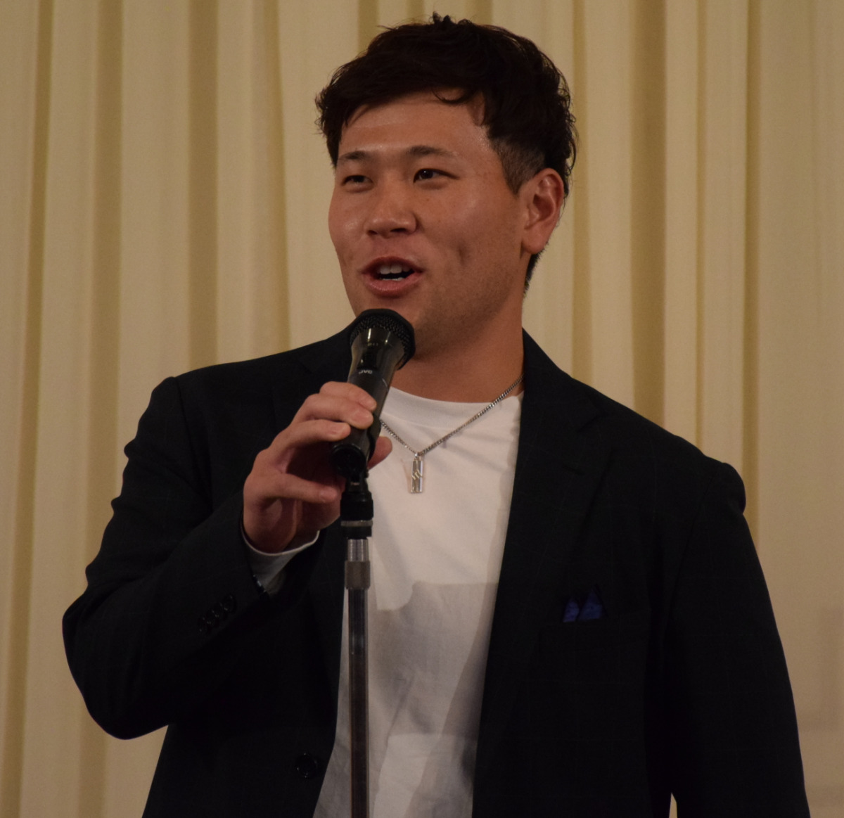 その後は現役選手が壇上に上がり、試合前にチームの士気を高めるために歌う歌を披露して会場を盛り上げた。川本湊士キャプテンは「僕たちが野球をできる環境を作っていただき本当にありがとうございます。僕たちも先輩たちのようにたくましく立派に成長していきたい」とあいさつした。