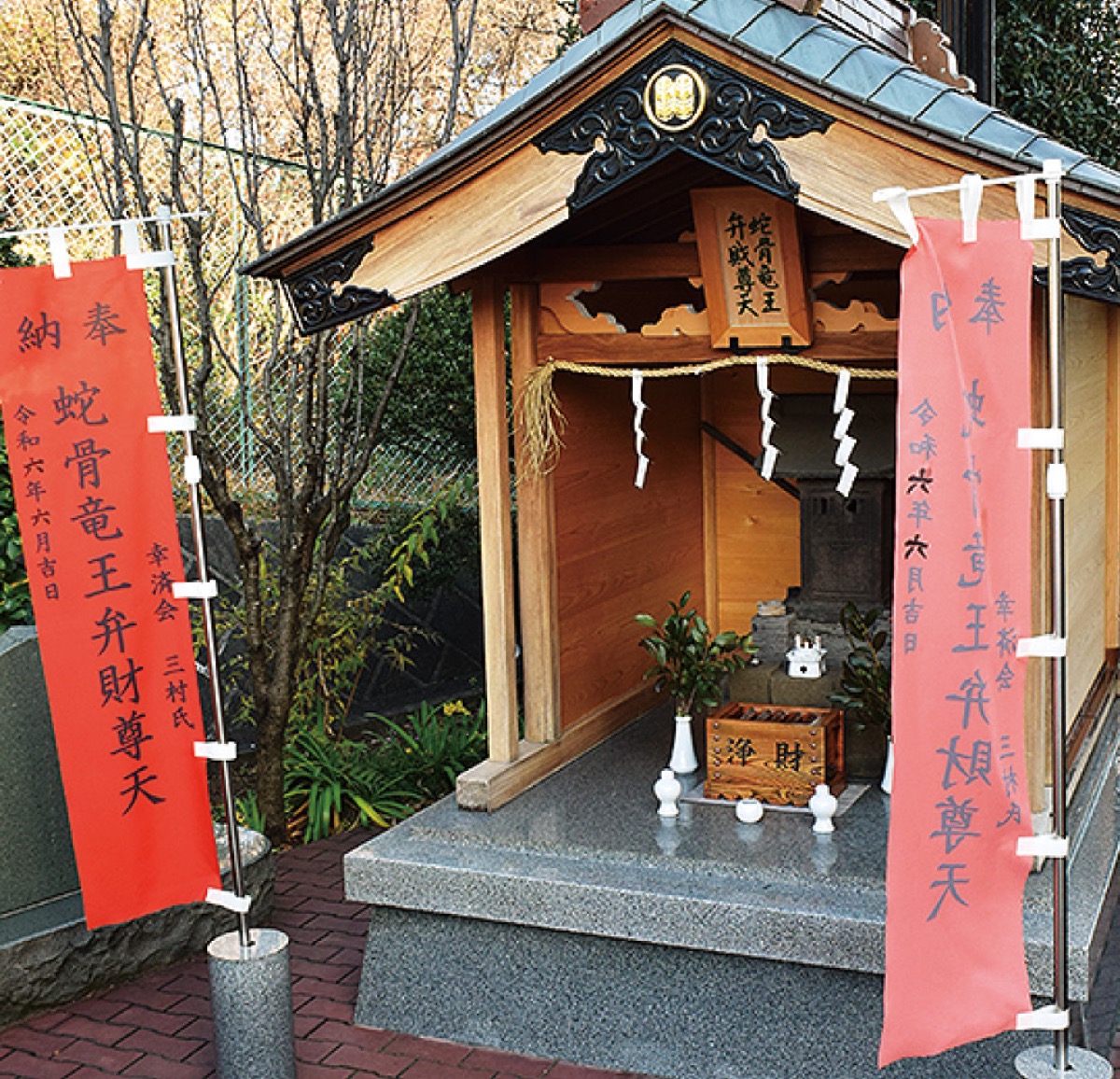 ――今の相鉄線西谷駅北側高台のあたり一帯は、江戸時代の中頃は猪(いの)子(こ)山(やま)と言われ、険しい山でした。その頃、川島村にはとても仲の良いきこりの顕蔵夫婦が住んでいました。2人は毎日、お弁当を持って山仕事に出掛けるのでした。ある日仕事が一段落したところで先におにぎりを食べ始めた顕蔵さんだったが、水を汲みに行ったおっかあが戻ってきません。心配になり森の中へ探しにいくと木の間から今までみた事もない恐ろしいほど大きな大蛇が見えました。胴の周りは60cm、長さは4・5m。大蛇の口元には見覚えのある赤い布の切れ端が見えていました。おっかあが大蛇に喰われてしまった顕蔵さんは村へ帰り、村のみんなに話しました。そして、村人の一人で鉄砲の名人である治平さんは大蛇の退治のために何日も探し回り、雑木林の滝つぼの脇でとぐろを巻いている大蛇を見つけ火縄銃で打ちました。見事命中し、大蛇は滝つぼの中へ落ちていきました。顕蔵さんの悔しさを晴らすため止めを刺そうと滝つぼに目を凝らしていると、大蛇が治平さん目掛けて襲い掛かってきました。「バーン」、見事にこの一発で頭を打ち抜かれた大蛇はピクリとも動かなくなりました。大蛇を退治した知らせを聞きやってきた村人はその大きさに驚きました。村長は「大蛇の祟りが村に不幸をもたらしたらいかん。この大蛇を葬っておっかあともども供養しよう」と言いました。あまりにも大きくて川島村まで運ぶことができなかったので鋸で真っ二つに切り離しました。胴体からしっぽの方は猪子山のふもとのさかいの谷戸(現在の新井町)まで運び埋めました。目印に一本の松の木を植え「弁天塚」と名づけました。頭の方は大八車に乗せて川島村まで運び大きなケヤキの木の下に埋めました。そこに小さな祠を建て、祀られました。この祠は平成13年まで帷子川の鷲山橋近くにありましたが、現在は「かわしまホーム」の敷地内に立派な祠が建てられています。