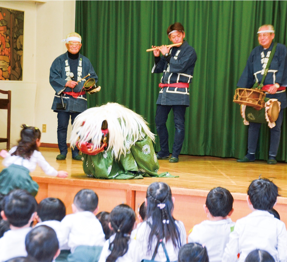 三村会長は「園児の笑顔が見られて良かった。逆に我々が子どもたちから元気をもらった」と笑顔で話した。同園の松井晶子教諭は「園児たちは獅子舞を間近で見るという貴重な体験ができた」と感想を述べた。