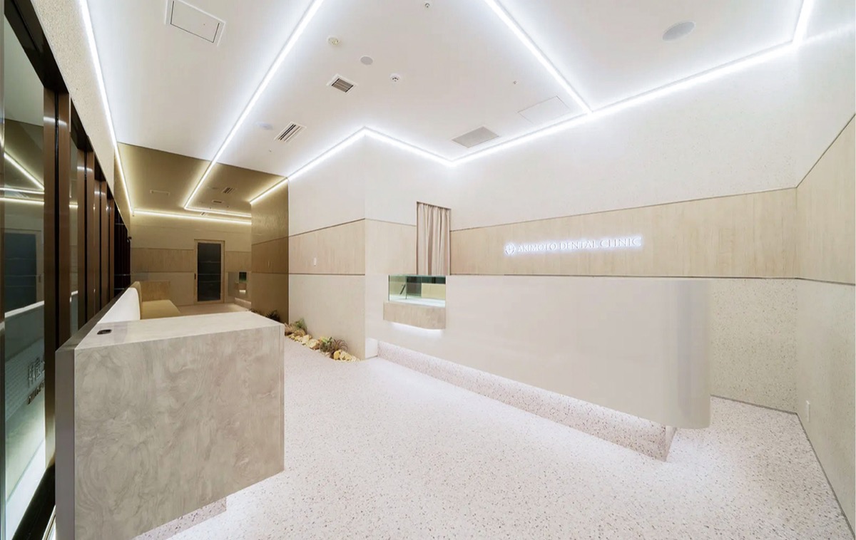 羽沢横浜国大駅前の新しい商業施設「HAZAAR」内にオープンしたあきもと歯科(秋元陽院長)。昨年秋に開業した新施設の中に入る同院は、待合室も広々として落ち着いた雰囲気。