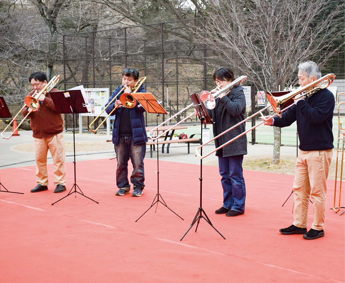 また、無料体験コーナーではコマ回しや竹馬などの遊び体験できるブースがにぎわいを見せていた。ステージイベントでは横浜を中心に活動するアマチュアトロンボーンアンサンブル「ミスターボーンズ」による演奏や、大道芸人コーキによるパフォーマンスなどが会場を盛り上げた。
