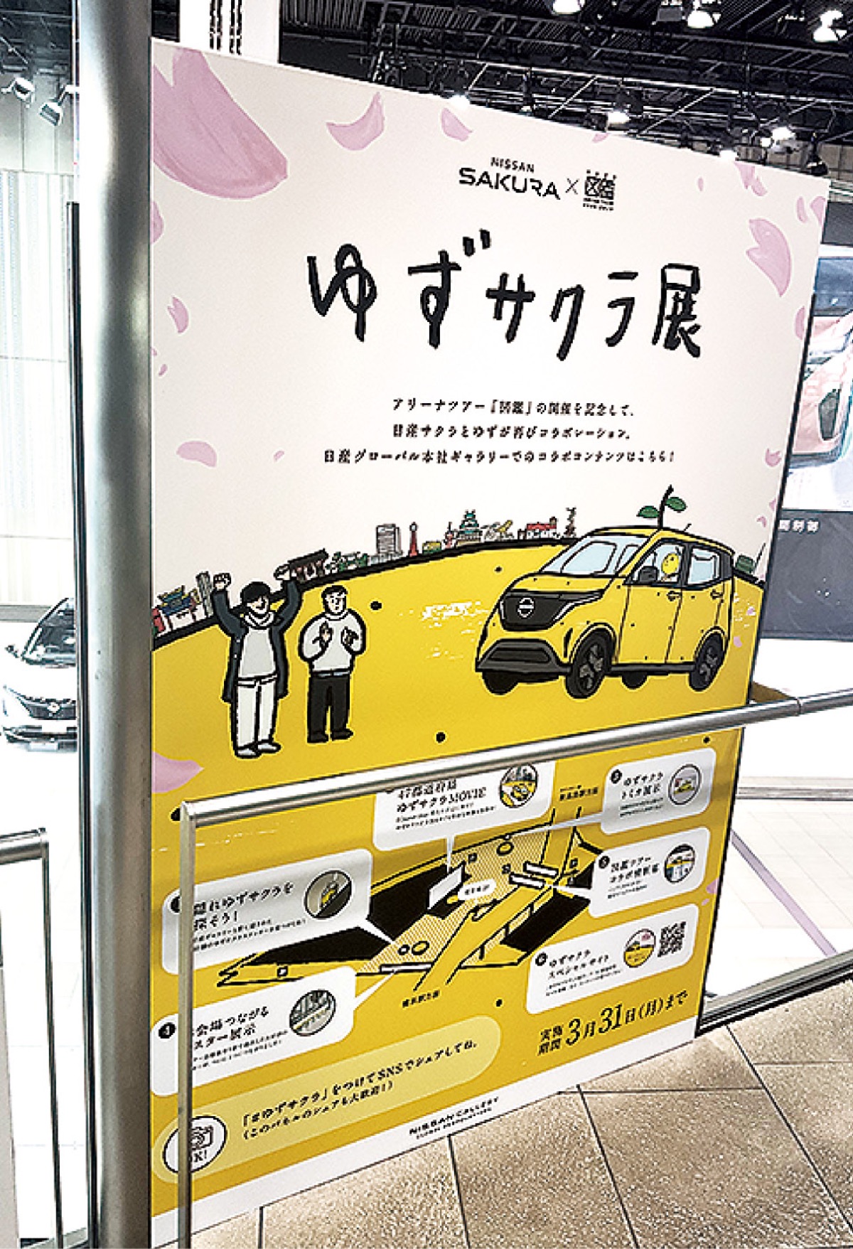 西区の日産グローバル本社ギャラリーでは、同ツアーファイナルを飾るコラボレーション企画として「ゆずサクラ展」を3月31日(月)まで実施している。会場では全国の公演会場の最寄り駅で掲出されたポスターを1つにつなげて展示しているほか、ゆずや松たか子さんも登場する特別映像の放映、10カ所に隠されたステッカーを探す企画など、ファン以外も楽しめる内容が盛りだくさんとなっている。