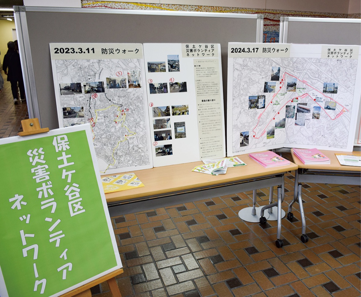 当日ロビーでは保土ケ谷区民会議、保土ケ谷区災害ボランティアネットワーク、無印良品、横浜国立大学BOSAIラボなどによる防災に関するブースが出展。来場者には、長期保存可能なレトルト食品や防災マップなどが配布された。
