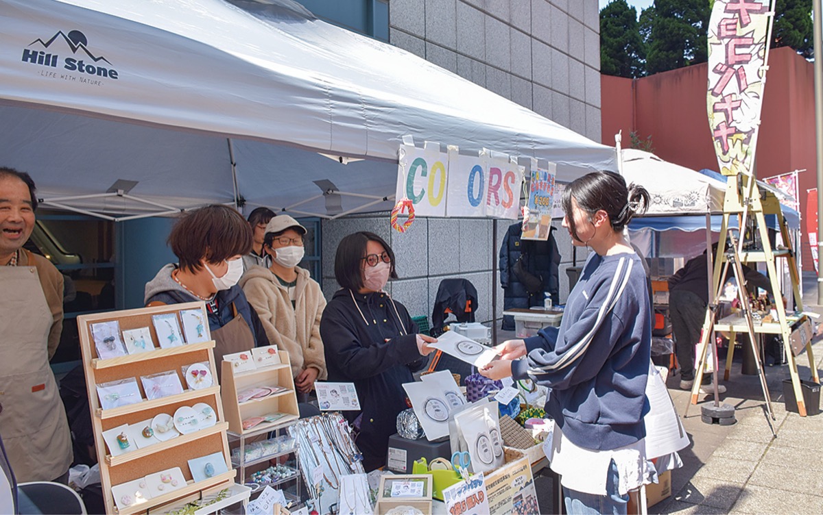 就労継続支援B型事業所「COLORS」のブースでは、自家焙煎したコーヒー豆やハンドメイド作品を販売。会場内ではピアノの生演奏も行われていた。また、カラフルなわたあめやチョコバナナ、ハンバーガーやおにぎりなどのキッチンカーも出店され、グルメも充実していた。
