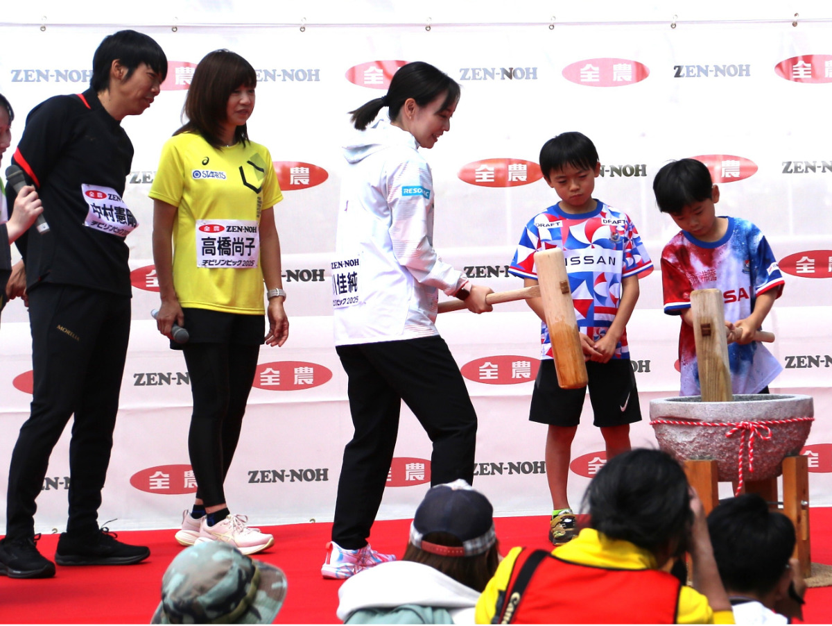 「こどもの日」の5月5日、五輪金メダリストらと親子がスポーツを楽しむイベント「JA全農チビリンピック2025」が日産スタジアム=港北区=で行われた。