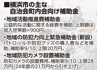 横浜市は今年度から自治会町内会の活動に対する「地域活動推進費補助金」の上限をこれまでの加入1世帯当たり700円から900円に引き上げた。2006年に助成金制度が導入されてから初の引き上げで、物価高や活動のデジタル化が背景にある。市は引き上げにより、担い手不足やコロナ禍で停滞した町内会活動の後押しにつなげたい意向だ。