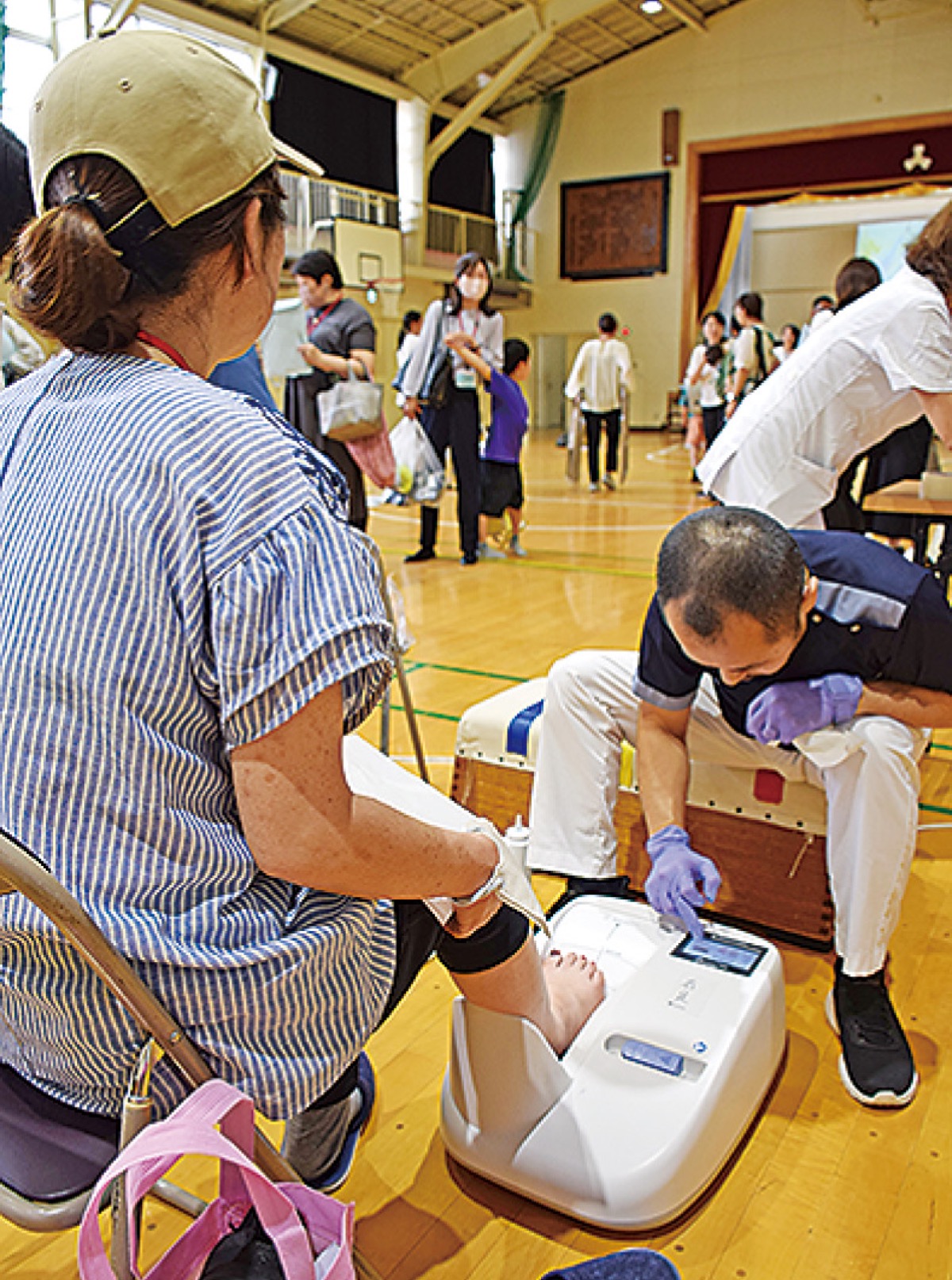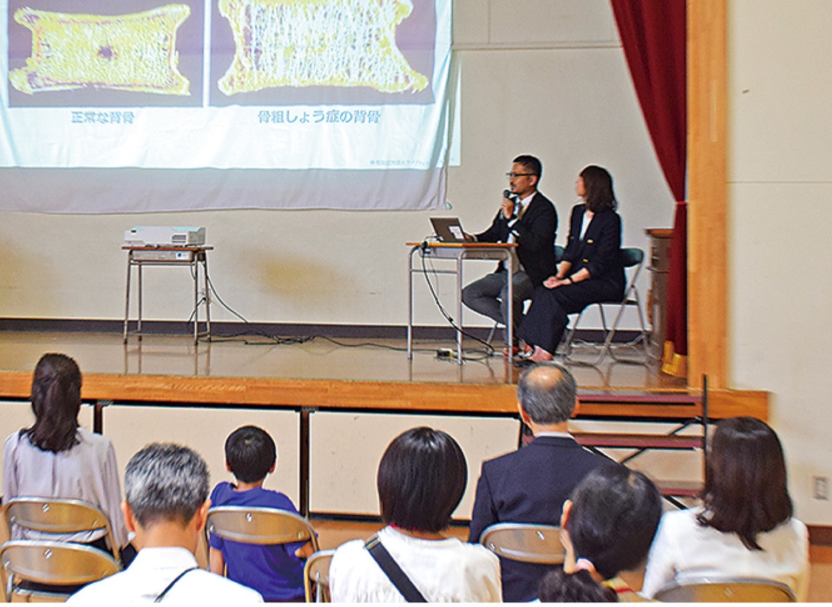 講演終了後には骨量の測定体験が行われ、多くの参加者が体験していた。50代の女性は「とてもためになる話を聞くことができた。骨密度測定は低い数値だったので受診しようと思う。子どもにも骨粗しょう症予防の大切さを伝えたい」と話した。