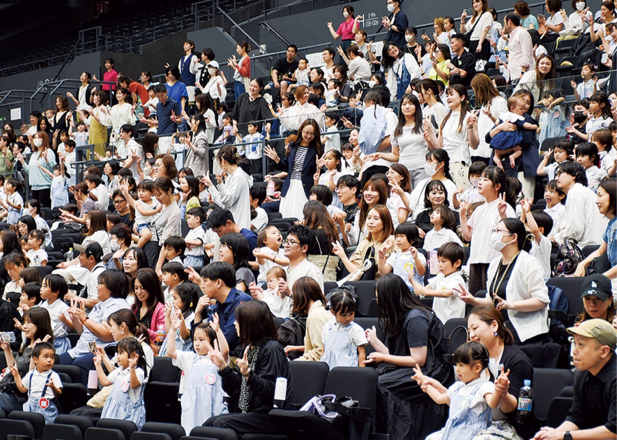 保土ケ谷区内で初音丘幼稚園やスカイハイツ幼稚園などを運営する学校法人初音丘学園(渡邉啓一理事長)が6月5日、横浜BUNTAI(中区)で法人創立70周年を祝う会「70歳バースデーパーティー」を開いた。両園の在園児と保護者や地域住民約950人が集まり賑った。渡邉理事長は「これまでの歩みは地域の皆さまが温かく見守ってくださり、保護者の深いご理解とご協力があったからだと思っています」とあいさつした。