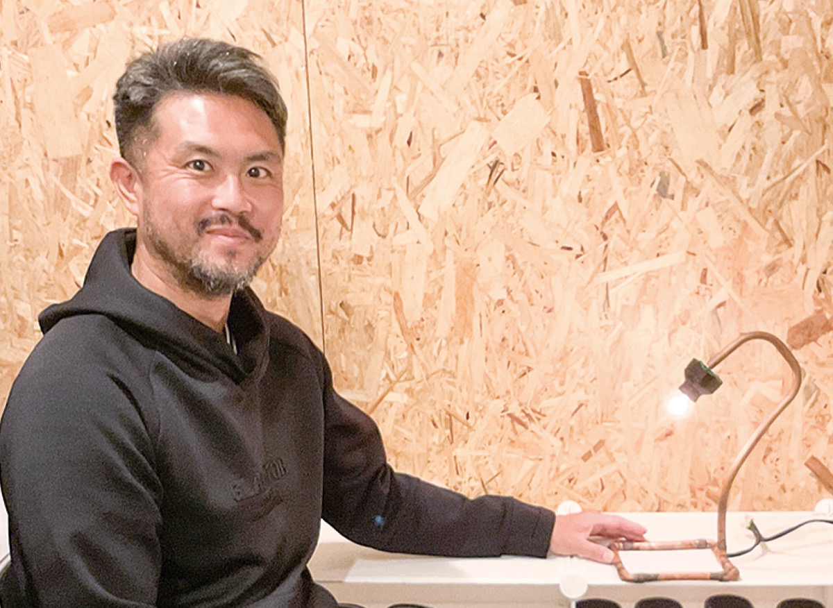 エアコンの室内機と室外機を繋ぐ銅管はリサイクル時にCO2を排出し、それが地球温暖化などを促進させるという。同社はこうした廃材を活用し、照明器具や机などを作る事業に挑戦。試作品は銅管の溶接部分などがアンティークな雰囲気を醸し出している。櫻田社長は「日頃から環境に配慮した施工を実践しています」と話し、新ビジネスの可能性を探る。