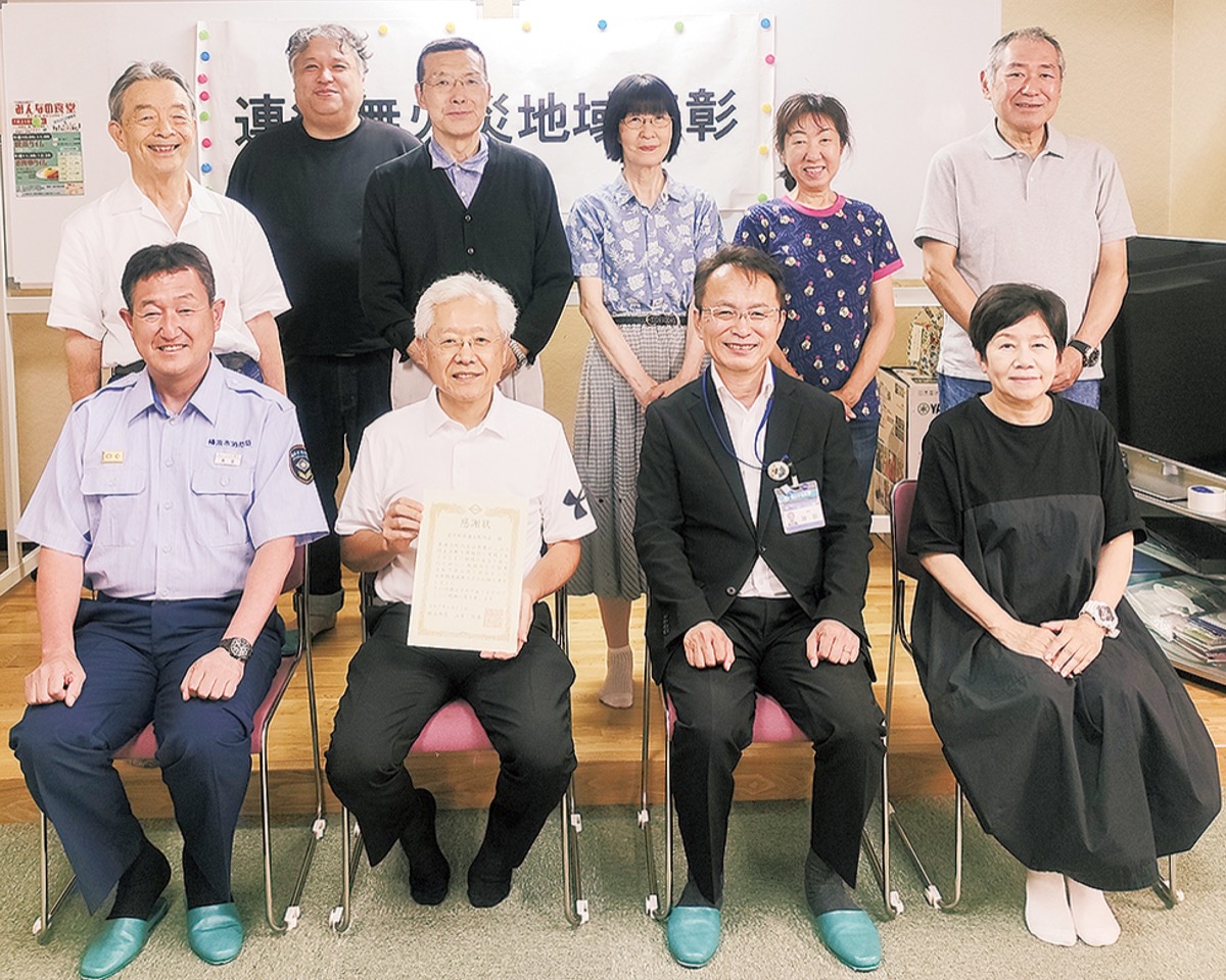 岩井町原連合町内会(野口昌紀会長)が4年間の連続無火災を達成したとして、6月22日に市長表彰を受けた。