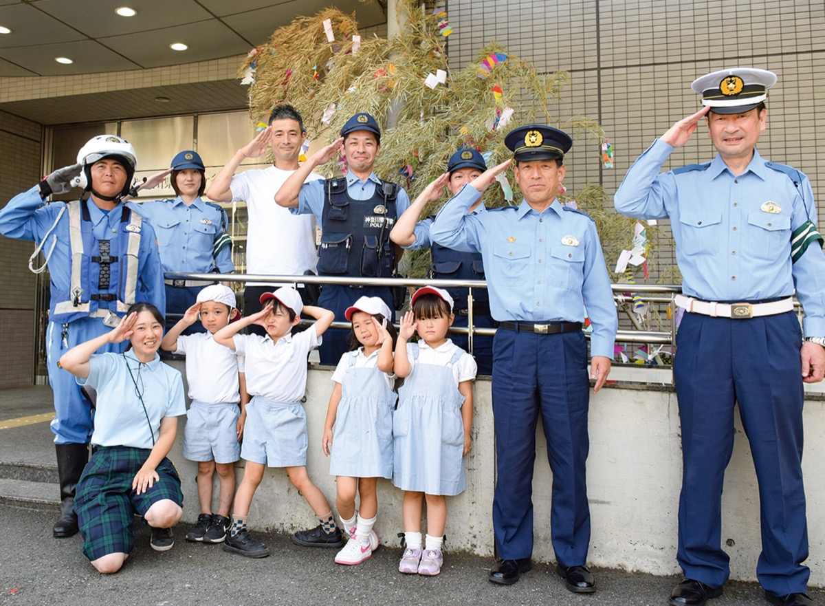 七夕を前にした7月3日、初音丘幼稚園(学校法人初音丘学園/初音ケ丘42の2)に通う4人の園児が保土ケ谷警察署(田渕祐輔署長)を訪れ、七夕飾りを同署へ寄贈した。