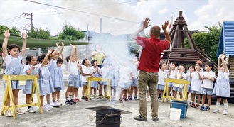 学校法人初音丘学園が運営する初音丘幼稚園とスカイハイツ幼稚園で7月8日、七夕飾りの短冊を燃やすことで火に浄化され煙となり、天に昇り願い事が神に届くとされている風習「笹燃やし」が行われた。