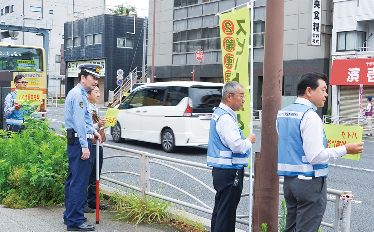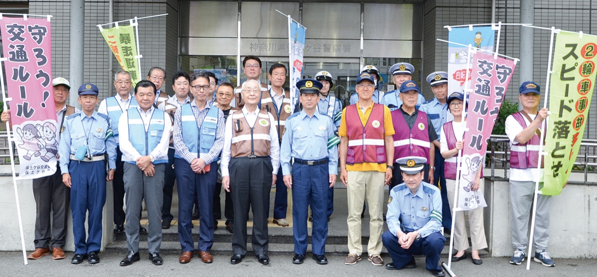 保土ケ谷交通安全協会や保土ケ谷安全運転管理者会などは7月11日、保土ケ谷警察署前の国道16号で夏の交通事故防止キャンペーンを行った。