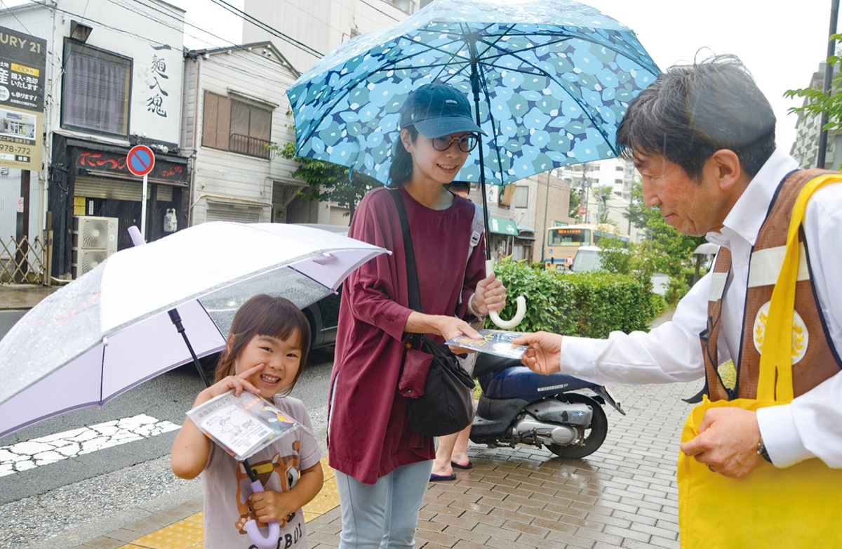後半は買い物客などに交通ルールの徹底を呼び掛けた啓発物を配る活動を実施。ウサギをモチーフにした保土ケ谷警察署マスコットキャラクター「ほどぴょん」も現場を訪れ、板橋会長や保土ケ谷交通安全母の会連合会の山野邉和子会長らと共に注意を呼び掛けた。