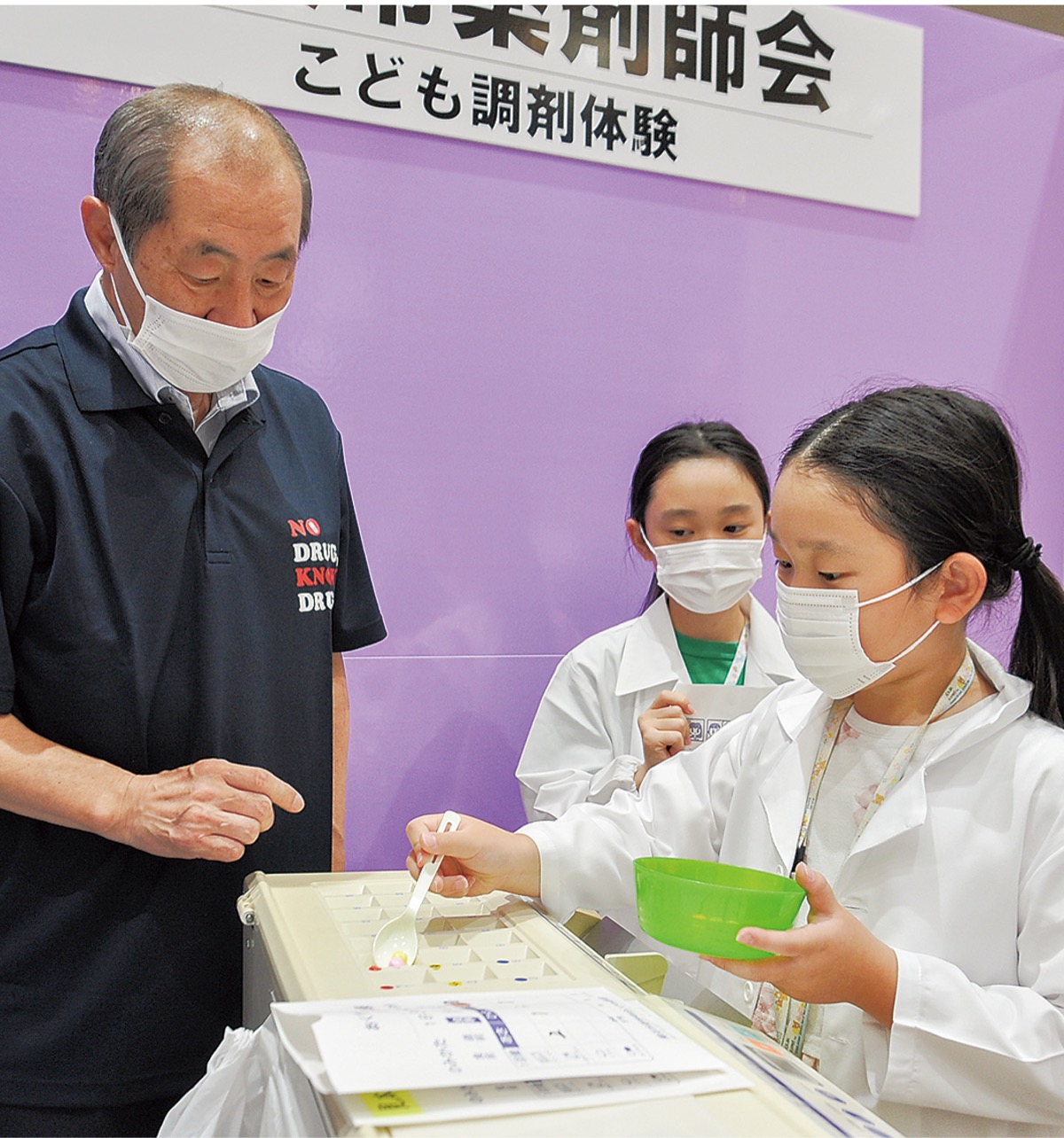 会場では薬物模型やパネル展示で危険性を訴えるとともに、各ブースで血管年齢の測定や漢方入浴剤を作るワークショップ、子ども対象の調剤体験などが行われ、多くの来場者で賑わった。