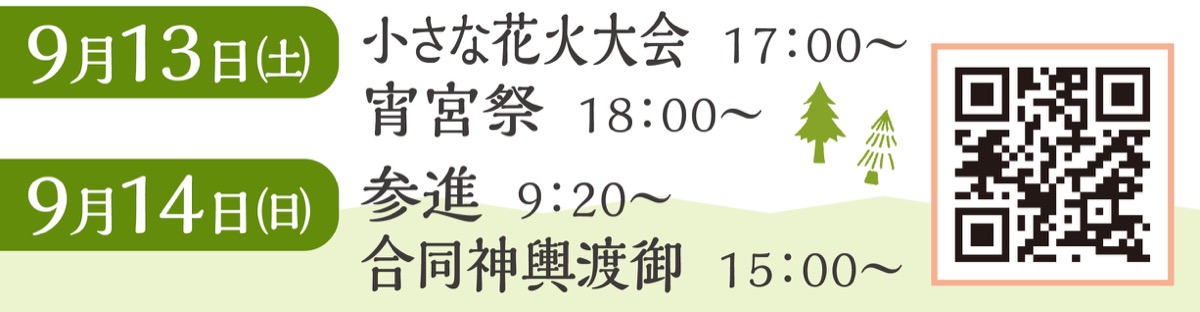 13日午後6時から行われる宵宮祭では、同神社で伝統芸能を楽しむ会「ほしあかり」による雅楽や巫女舞奉納や手持ち花火大会などを実施。2日間にわたる例大祭を盛り上げる。
