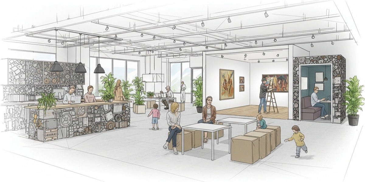 同拠点の運営事業者は地域で不要となった資源を回収し、地域住民への資材提供やワークショップに活用する循環型の取り組みなどを構想中。横浜周辺で活動するアーティストの制作支援なども実施するとしている。