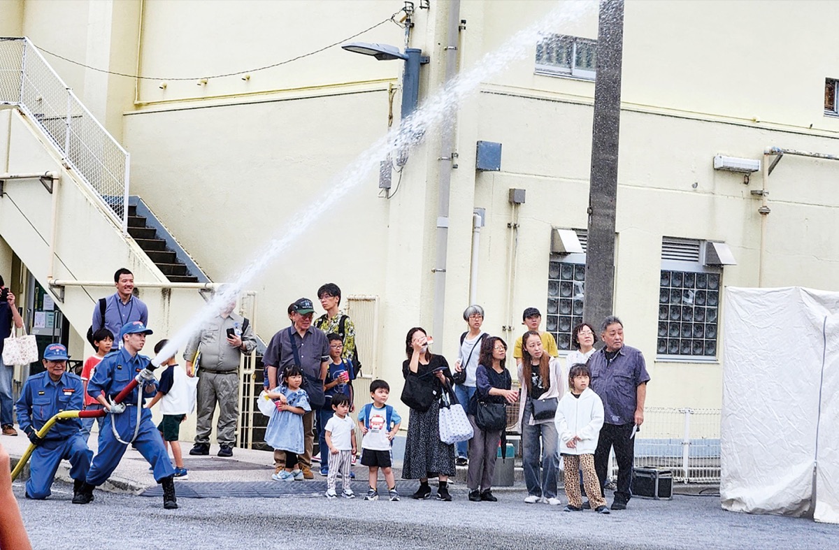 また、備蓄庫見学、災害時にも通話が可能な公衆電話の展示、炊き出し訓練などが実施され、参加者にカレーライスが配布された。