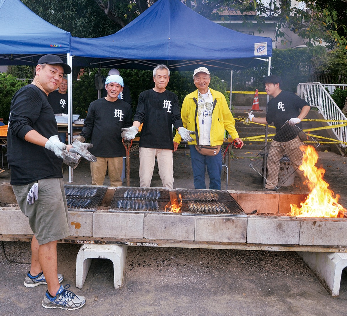 宮田町の「さかな屋Ocean」から仕入れたサンマを使用。同自治会の役員らが網の上で丁寧に焼き上げ、汁物などとともに提供した。同自治会の奥平隆会長は「細身だった昨年に比べて今年のサンマは脂が乗っていておいしかった。こうした祭りが地域交流のきっかけになれば」と話し、開催に手応えを感じていた。