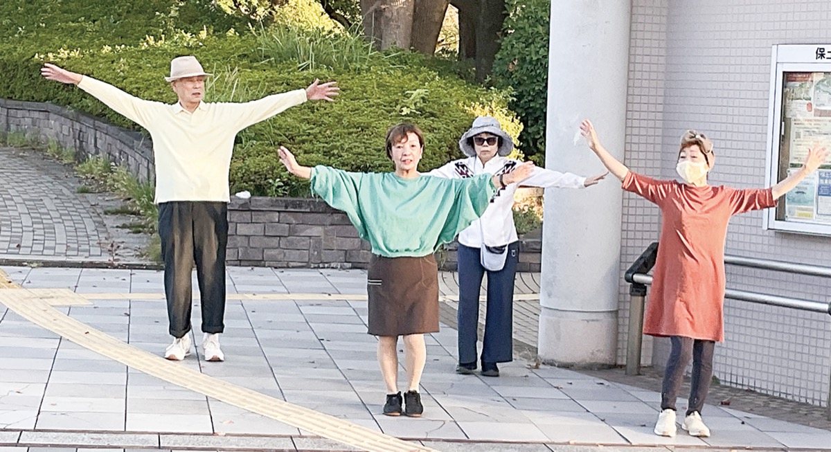 県立保土ケ谷公園の噴水広場では毎日午前6時30分ごろに、住民有志によるラジオ体操が行われている。長年参加しているという男性は「正式な組織ではなくリーダーもいない。自由に行われているが、荒天の時でも数人は来る」と話す。