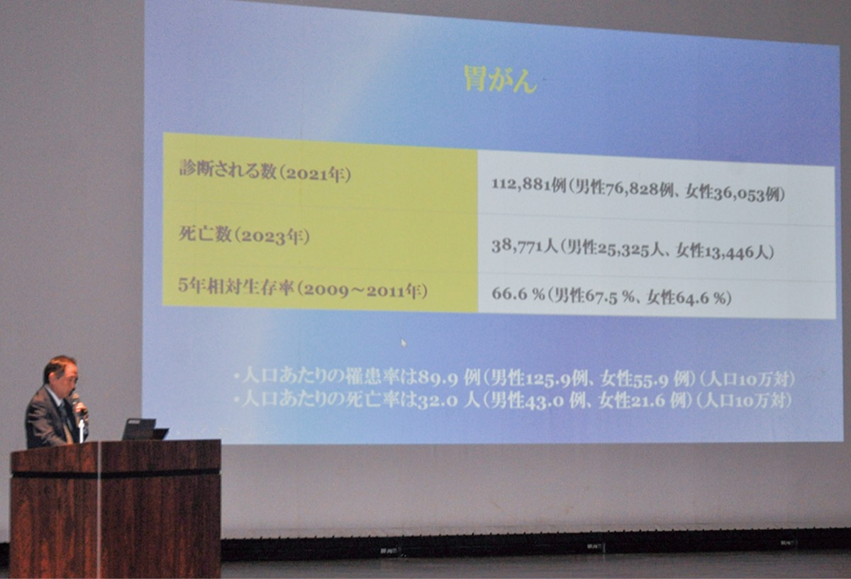 消化器(食道・胃・大腸・肝臓・胆道・膵臓)のがんは、がんによる死亡者数の約半数を占める。同講座は市民が消化器がんについての理解を深め、いざという時に命を救うきっかけになることを目的に開催された。
