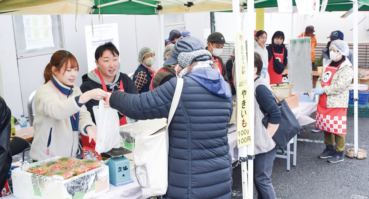 同支店ができたのは2005年。同支店ではこれまで支店まつりは開催されていなかったが、組合員と職員との絆や地域住民との交流を深めることを目的に初の開催となった。当日は、組合員が育てたゴボウ、ミニカボチャ、里芋など14品目約300品の野菜が並んだ。そのほかにも焼きそば、焼き芋、玉こんにゃくが販売されていた。終了間際になり用意された野菜が全て完売になると、職員や組合員から拍手が起こった。
