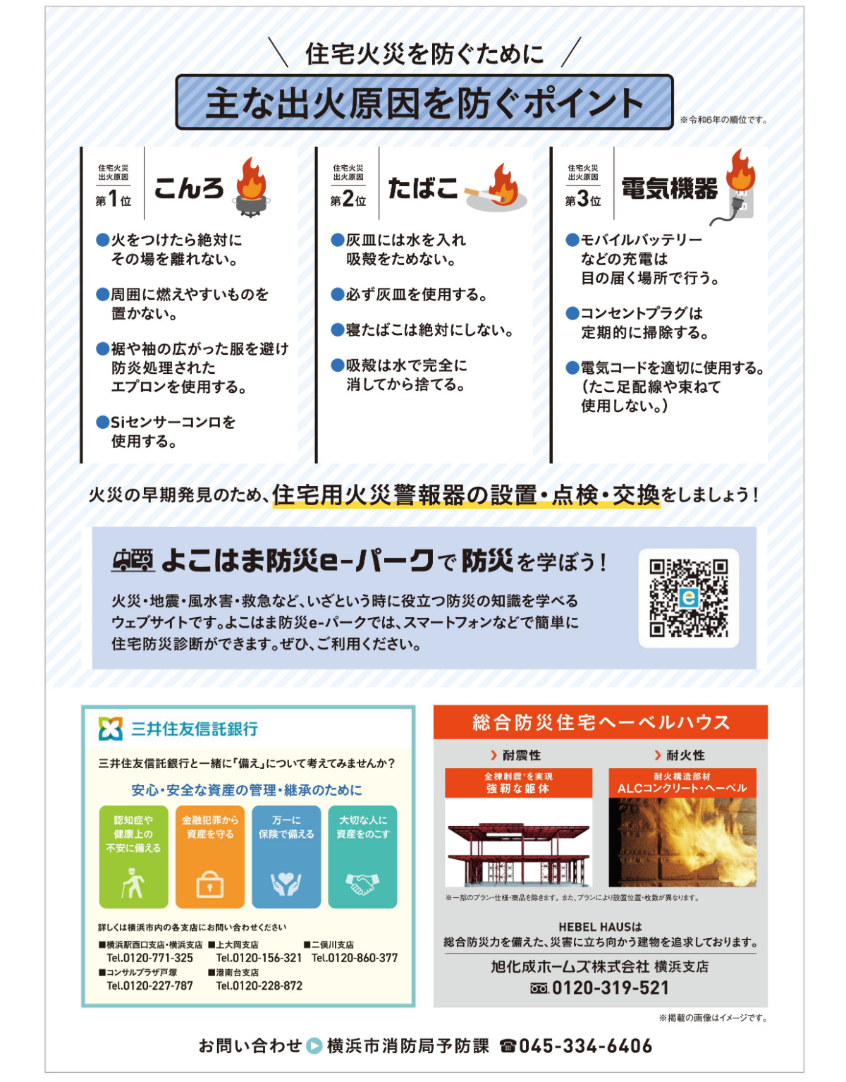 旭化成ホームズと三井住友信託銀行が横浜市消防局と連携して火災予防を呼びかけるチラシを作成し、両社が顧客を戸別訪問する際などに配布することが11月7日に発表された。