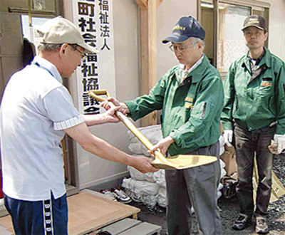 今回の物資運搬は、同会岩手県支部から津波で被害を受けた地域で泥かき用のスコップや土嚢(のう)袋が不足していることを聞いて行われたもの。会員らは岩手県の大槌町に物資を届け、炊き出しの手伝いのほか、現地の対策本部で今後の支援について話し合った。
