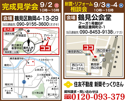 そんな同社の耐震技術が全てわかる完成見学会が9月2日(日)、区内駒岡の築35年・19坪のお宅を公開して行われる。当日は耐震の詳しい説明のほか、柱・ハリなどを残し構造からしっかり治すスケルトンリフォーム(間取りも自由自在)の技術を体感。屋根葺替えや外壁サイディングで一新された外観も見学できる。