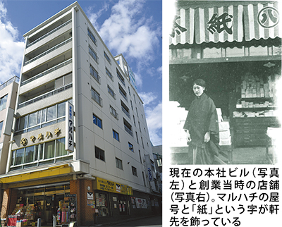 その後、現在の本社ビルが建つ土地を購入。1950年に有限会社丸八紙店を設立した。59年から文具や事務用品の取り扱いも開始。64年に有限会社マルハチへ社名を変更した。5年後の69年、当時はこの界隈に一つしかなかったという7階建ての本社ビルを完成させた。現社名、「株式会社マルハチ」となったのは77年だった。