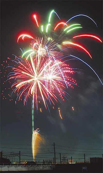 佃野公園周辺と鶴見川土手で8月17日、鶴見川花火大会が開かれ、訪れた家族連れなどを魅了した。