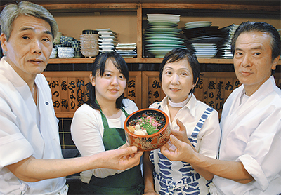 市内商店街の丼ものナンバーワンを、客が投票して決める「ガチ丼!」。区内から出場していた重寿司=駒岡(駒岡商栄会)=の「天然本マグロの合わせ丼」が予選を突破し、決勝ラウンドへと駒を進めた。鶴見からは唯一の決勝進出店となる。同店2代目の相澤亜香根さんは「鶴見の代表として恥じないよう、上を目ざしたい」と意気込む。