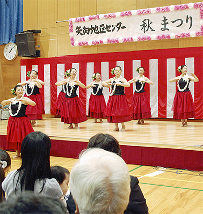 矢向地区センター秋祭りが、10月5日と6日に行われ、5日には悪天候ながらも近隣住民ら2600人以上が来場した。会場では折り紙や書道の展示が行われ、地下の体育館ではフラダンスなどが披露された。