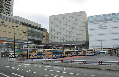 JR鶴見駅東口周辺は、区役所や警察などの官公庁、企業が集まるエリア。駅前は高層マンションや大型の駅ビルが立ち並び、区内でも都会的な雰囲気が漂う。横浜市による再開発が進行中で、これまでに複合施設「シークレイン」が建設された。現在は駅前広場の歩道拡張や、バス停の集約などの再整備が行われ、2014年に完了予定だ。