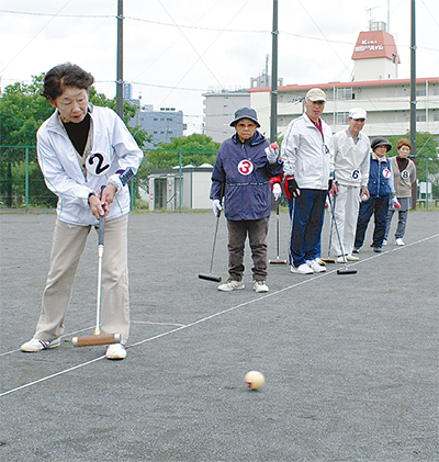 参加者は「ゲートボールは頭脳戦。ボケ防止になる」と笑顔で楽しんでいた。