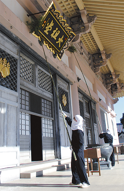 大本山總持寺で12月16日、山内にある建物などのほこりを落とす「すす払い」が行われた。