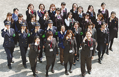 大勢の女性たちが、カメラに向かって「あっかんべえ」―。3月12日に行われたポスターの撮影会には、金融機関で窓口案内などをする女性ら約20人が集まった。ユニークなポーズは、2012年に鶴見区防犯会議が募集した川柳で、鶴見警察署長賞に選ばれた「あかんべえ おまえなんかに 金出すか」(浅野幸子さん作)をなぞっている。