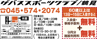 豊岡町のザバススポーツクラブ/鶴見は、9月13日から敬老の日の15日までの3日間、60歳以上を無料招待する。60歳以上なら、期間中施設内の設備を自由に利用し運動を楽しめる。