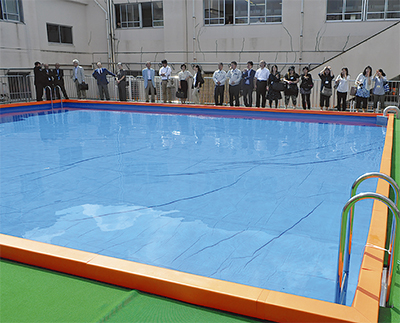 今回設置されたのは、11m×13mで水深約1・1mの組み立て式プール。開設式典では生徒らのダンスや、インターハイ出場経験のある教諭による個人メドレーも披露された。