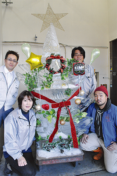 氷の加工・販売などを手掛ける「氷屋ツルミセイヒョウ株式会社」(飯山尚子代表=人物風土記で紹介)=栄町通2の13の2=が、今年も氷で手作りしたクリスマスツリーを12月23日から同社の前に展示する。