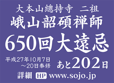元亨元年(一三二一)に總持寺を開かれたのは瑩山禅師ですが、 その住職の期間は四年ほどでした。