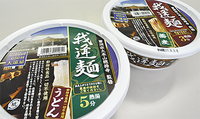 商品は、「そば」と「うどん」の2種類。それぞれベースとなる出汁を変え、動物性食品は一切使わずに、山と海の恵みを生かした食材を使用。そばはしょう油、うどんは塩味がベースとなっている。一個300円(税込)で、總持寺境内の香積(こうしゃく)台(だい)売店などで販売中だ。