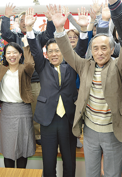 現職6人に対し、前回議席を失った民主からの2人と、県会現職から鞍替えした無所属新人が立ち向かう構図となった市議選。トップで通過したのは、前回から2期連続となった尾崎氏だった。午後11時半ごろ、当選確実の報に触れた尾崎氏は「政治家としてのモラルが問われている今、実績を残すことで恩返ししていきたい」とあいさつ。「中学校昼食の実現や子育て支援、防災教育などの政策を進める」と抱負を語った。